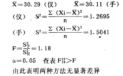 通過F檢驗(yàn)法計(jì)算兩組數(shù)據(jù)的方差比得到對(duì)比試驗(yàn)中兩組數(shù)據(jù)其精密度有無顯著差異。