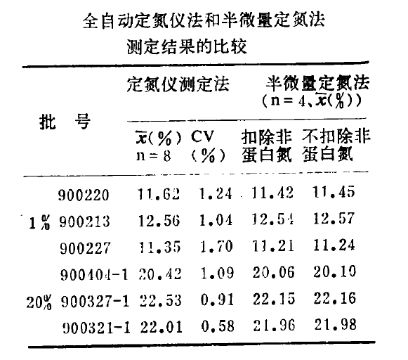 1.通過對(duì)以上二種不同規(guī)格6批人血白蛋白含量的測定表明,用全自動(dòng)定氮儀法與半微量定氮法結(jié)果基本一致。