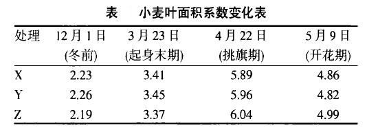 。2)不同處理后,X與Y處理施了起身肥,兩者的葉面積系數(shù)增加仍然趨于平行,但Z處理施了拔節(jié)肥后,葉面積系數(shù)增加的速率最快,到4月22日時,由原來的最低升為最高;