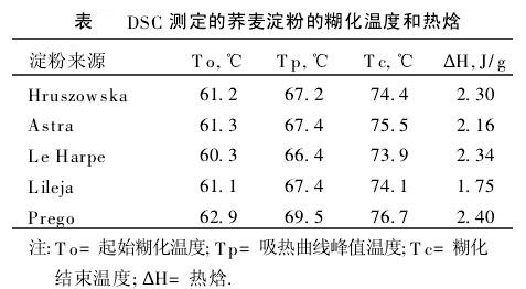 綜上所述,這三種方法在淀粉糊化性質(zhì)測定的應(yīng)用中使用都很方便。為了進(jìn)行較為直觀的比較,現(xiàn)將作者用這三種方法對從五個不同來源的蕎麥中分離的淀粉所做的分析結(jié)果列于表。