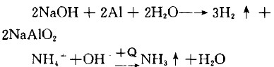 在樣品消化液中加入適量鋁片和固氫氧化納,從而利用強堿與鋁反應產(chǎn)生氫氣和大量熱,使樣品消化液中的按鹽以氨的形式排出: