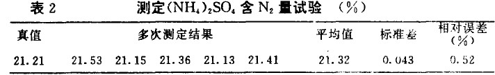3.1.2準確度與精度實驗選用分析純硫酸錢作標準物進行含氮量試驗,其結果見表2.由表2可見,改進法測定硫酸按含氮量的標準差為0.03,變異系數(shù)為0.2%,相對誤差0.52%.