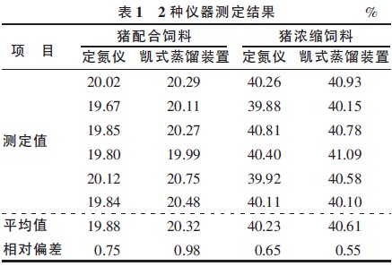 2種定氮儀對(duì)飼料粗蛋白含量測(cè)定結(jié)果的影響