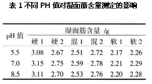 一、不同PH值對(duì)濕面筋含量測(cè)定的影響