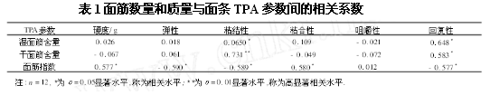 一、面筋數(shù)量和質(zhì)量與面條TPA的關(guān)系