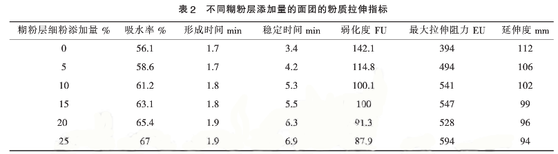 一、糊粉層細粉對面團粉質拉伸特性的影響
