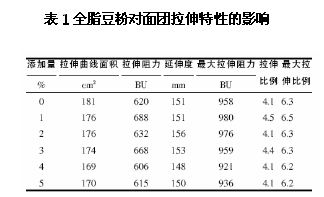 一、全脂豆粉對面團(tuán)拉伸特性的影響