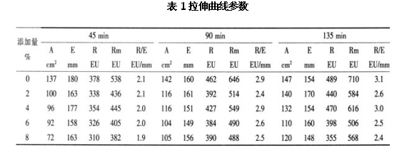 一、小麥次粉對(duì)面團(tuán)拉伸試驗(yàn)的影響