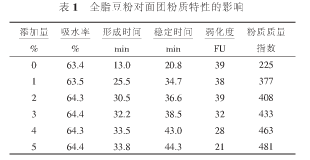 一、全脂豆粉對面團粉質(zhì)特性的影響