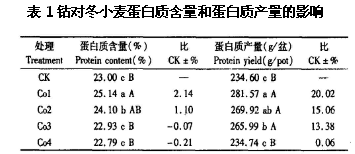 一、鈷對(duì)冬小麥蛋白質(zhì)含量的影響