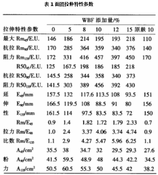 一、麥麩膳食纖維對面團拉伸特性的影響